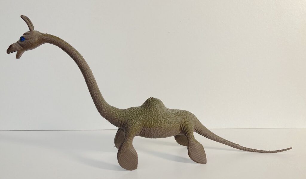Readers already familiar with me from the Dinosaur Toy Blog may know I’m a plesiosaur palaeontologist. As such, I’m ofter asked about the Loch Ness Monster: could it be a living plesiosaur? I’ve considered all the evidence and outlined my thoughts about this on my plesiosaur website. The short answer is “no”, but Nessie, in most of her incarnations, does at least share many characteristics with long-necked plesiosaurs. The AAA as a good example, as it has the iconic long neck, a short body and tail, and four flippers. Many Loch Ness Monster toys are essentially plesiosaurs, so there’s an argument that some of them could, or should, be reviewed on the Dinosaur Toy Blog. Indeed, before the Monster Toy Blog existed, some were. However, the AAA Loch Ness Monster would be a difficult sell there, as it has anatomical characters that clearly differentiate it from plesiosaurs.