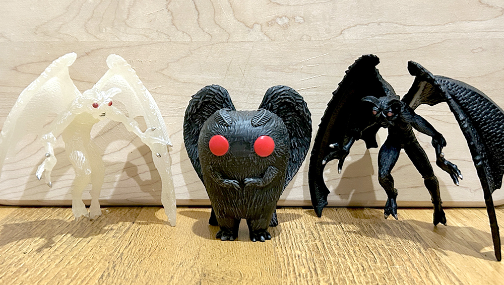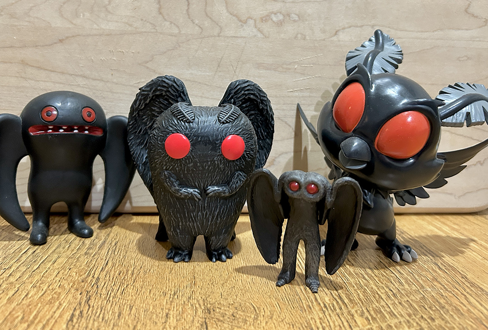 There is a fair bit of Mothman merch out there, from plushes to enamel pins, but the figural representations remain somewhat light. There is the Safari Ltd figure and its glow-in-the-dark variant, as well as some Japanese offerings from Takara and Medicom (among others), a cutesified “Cryptkin” figure from Cryptozoic Entertainment, and a Mezco figure from some time ago that goes heavy on the “moth” and light on the “man”. That list is far from comprehensive, but these are the Mothmen figures that I was able to recall without falling down a rabbit hole.